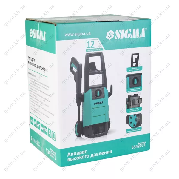 Мийка високого тиску Sigma 1700 Вт макс., 130 бар, 6.7 л/хв, шланг 5.5 м + турбонасадка