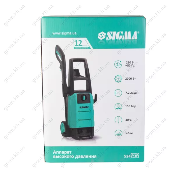 Мийка високого тиску Sigma 2000 Вт макс., 150 бар, 7.2 л/хв, шланг 5.5 м + турбонасадка