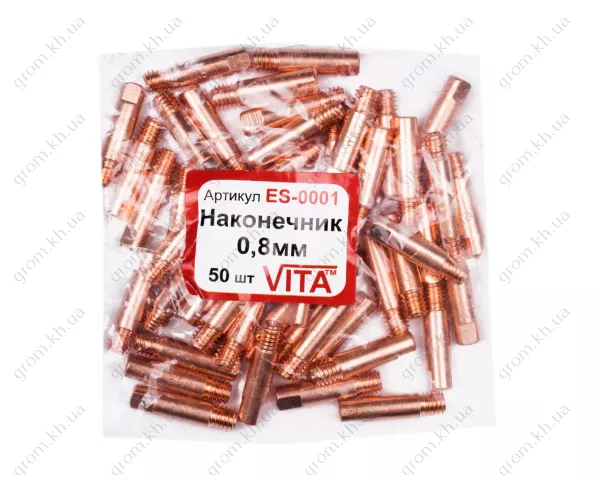 ГоловнаКаталогЗварювальне обладнанняКомплектуючі для зварювального устаткуванняДля напівавтомата mig / magНаконечники для пальниківНаконечник для пальника зварювального напівавтомата VITA 0,8 мм