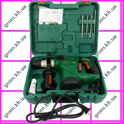 - перфоратор, інструкція з експлуатації, обмежувач глибини, додаткова рукоятка, свердла (3 шт.), зубило піка , зубило плоске, пиловловлювач, ключ фланцевий, контейнер з мастилом