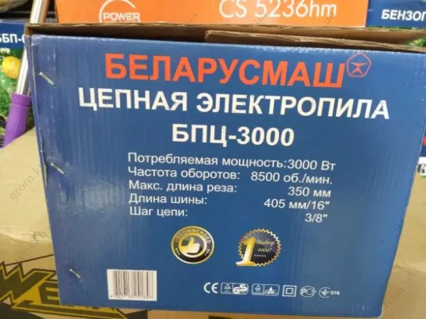Пила ланцюгова електрична Беларусмаш БПЦ-3000 (2 шини/2 ланцюги) збоку
