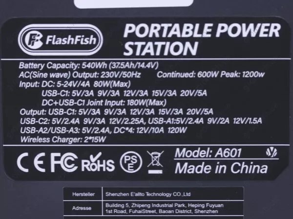 Характеристики Портативна зарядна станція FlashFish A601 150000mAh 600W