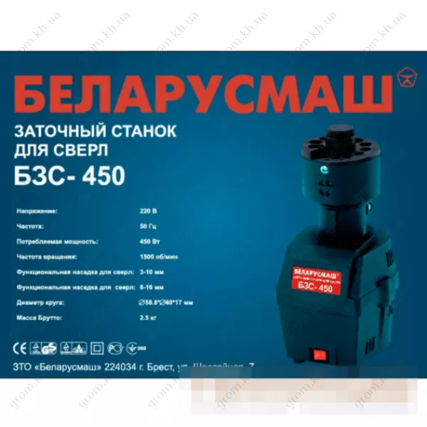 Характеристики Верстат заточувальний для свердл Беларусмаш БЗС-450, дві бази