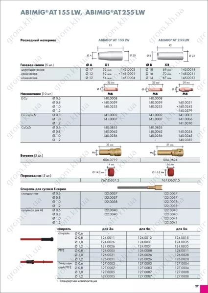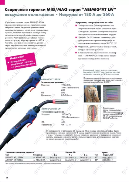 Характеристики Зварювальний пальник АBIMIG АТ 255LW