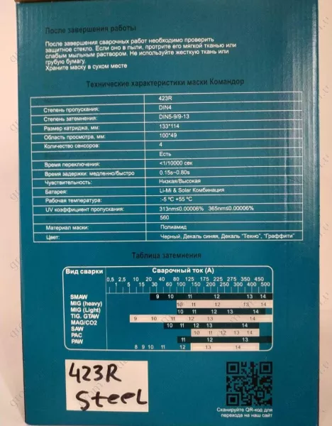 Характеристики Зварювальна маска MegaTec "КОМАНДОР" 423R (steel)