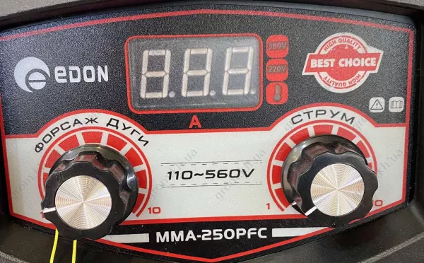 Зварювальний інвертор Edon MMA-250PFC (110-560В) забезпечить якісне виконання швів при зварюванні металу та металевих конструкцій. Апарат з покращеними технічними характеристиками має високу продуктивність за дуже доступною ціною, що робить його найбільш придатним пристроєм як для побутової, так і професійної експлуатації. Переваги Edon MMA-250PFC Крім компактних габаритів та можливості переміщення пристрою між об'єктами, список його переваг представлений: Інтуїтивно простий механізм управління дозволяє купити інвертор для проведення будівельних та монтажних робіт. При замовленні в інтернет-магазині є доставка. Апарат поставляється в повній комплектації, що включає сам пристрій, затискач маси та тримач електродів, зварювальний щиток, захисну маску, інструкцію та гарантійні документи.