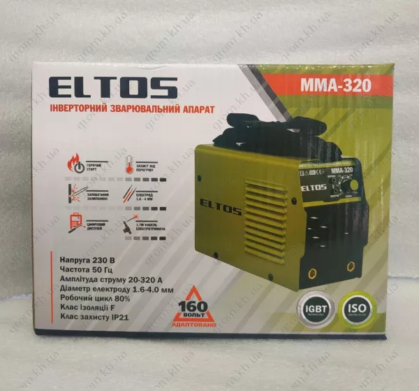 Зварювальний інвертор Eltos MMA-320 – найкраще сучасне однофазне обладнання, яке підійде як для побутового, так і професійного застосування. Він дозволяє отримати шви високої якості на металевих заготовках будь-якої товщини навіть недосвідченому зварювальнику. Таку техніку можна вибрати для майстерень, СТО, комунальних підприємств, будівельних і ремонтних організацій. Представлене обладнання вигідно виділяється серед аналогів за низкою характеристик. . Серед таких: