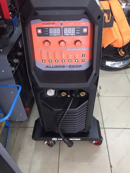 На великих будівельних об'єктах та промислових підприємствах часто використовують апарат WMaster MIG ALUMIG 250P. Жоден будівельний майданчик не зможе обійтися без зварювальних маніпуляцій. Експлуатаційні можливості цього пристрою є винятковими. Він оснащений допоміжною функцією зварювальної процедури. Завдяки кільком режимам зварювання реально виконати зварювальні роботи будь-якої складності та з будь-якого металу. Фахівцю потрібно лише налаштувати всі параметри та внести їх у пам'ять інвертора. Потім при підготовці до роботи потрібно тільки вибрати необхідну програму, яка вже є в пристрої. Дана модель зварювального агрегату має велику кількість переваг перед подібними аналогами. Спеціальні функції та режими вбудовані в приладі дозволяють комфортно працювати з різного стану та виконувати високоякісні, акуратні шви. До того ж можливість керування з відведеного місця та інформативна циклограма з електронним дисплеєм дозволяє прискорити виконання з'єднань металевих конструкцій. Живлення походить від однофазної мережі, тому його можна використовувати у побутових умовах. А захист від ураження електричним струмом дозволить користуватися ним навіть професійному зварювальнику. Зварювальний пристрій довговічний в експлуатації, оскільки наділений захисною системою від перегріву та перевантажень. Для зручності в комплектації передбачений візок для транспортування.