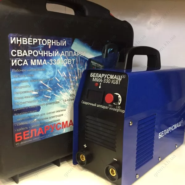 Характеристики Зварювальний інвертор Беларусмаш БСА ММА 330 IGBT в кейсі з електронним табло SI