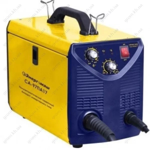 ЕНЕРГОМАШ СА-97ПА17 - зварювальний напівавтомат-інвертор, призначений для напівавтоматичного зварювання на постійному струмі до 170А дротом у середовищі захисних газів діаметром 0,6-0,8мм.