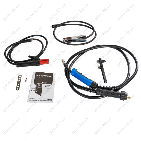 - Зварювальний апарат, універсальний молоток-щітка, зварювальний кабель зі зажимом «маса», зварювальний кабель з електродержателем, єврорукав, інструкція