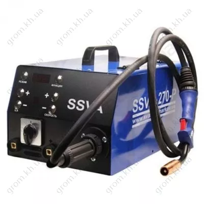 Зварювальний агрегат SSVA-270P (380в, 4-х роликовий) з чотирироликовим механізмом прирівнюється до пристрою для робіт на великих підприємствах. Завдяки трифазовій мережі 380 В, автомат має повноцінну подачу струму та напруги, а механізм на чотири ролики ідеально варить дротом 1,2 мм рукавом 6 м. Зварювання на даному апараті можна проводити алюмінієвим дротом. Через потужність даного агрегату, всередині встановлено посилену систему переохолодження та посилені вентилятори. Максимальний струм варіюється до 300 А, постійне навантаження за хороших, нормальних умов не менше 200 А, ККД становить 87%. Напрацювання на відмову заявлено у паспорті документа до 16.000 годин. Що стосується переваги даного апарату, то до них можна віднести, насамперед, стабільність зварювальної дуги, стабільність зварювання, високий показник енергозбереження та режим з вихідною напругою. Пристрій часто називають "говорящим", оскільки в Під час розрідження він починає видавати певні звуки, завдяки чому можна визначити заряд цього агрегату. У цей зварювальний пристрій укомплектований мікроконтроль, який контролює систему вентиляції. Вага апарату велика -19,5 кг. Укомплектованість коробки нічим не відрізняється від інших напівавтоматів: зварювальний кабель, тримач електродів, пальник, паспорт з гарантією і сам зварювальний апарат. Сила цього агрегату допоможе вам впоратися з непосильними завданнями в зварювальній справі. Для заводів, фабрик, фірм – це найкращий вибір.