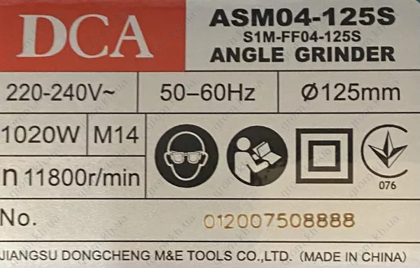 Характеристики Угловая шлифовальная машина DCA ASM04-125S