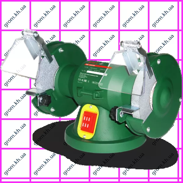 электроточило, инструкция по эксплуатации, шлифовальный диск - 2 шт., крепежные винты с гайками - 2 шт., опорная пластина для заготовки - 2 шт., барашковые гайки с винтами - 2 шт., защита от искр с креплением - 2 шт.